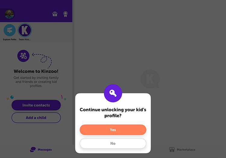 Step 1: Open Kinzoo Messenger on your child’s device. Tap Unlock your profile to chat.