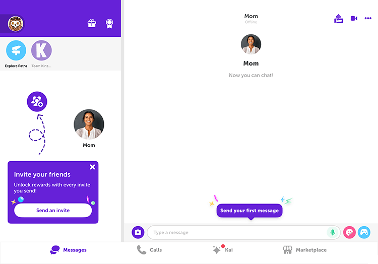 Kinzoo Messenger is the worry-free social messaging app for kids and families. Whether you’re group chatting with aunts, uncles, cousins and grandparents, or your kid needs a safe digital hangout for their gaming buddies, this is the all-in-one app made for connection, creativity and curiosity.